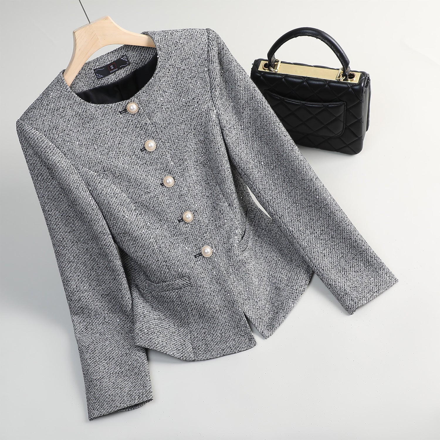 Flattering and beautifully structured, this blazer is crafted from a blend of Italian yarn that drapes gracefully. Designed with a softly curved waist that flatters the form and finished with pearl-button detailing. Made for the woman who knows the power of sharp simplicity.